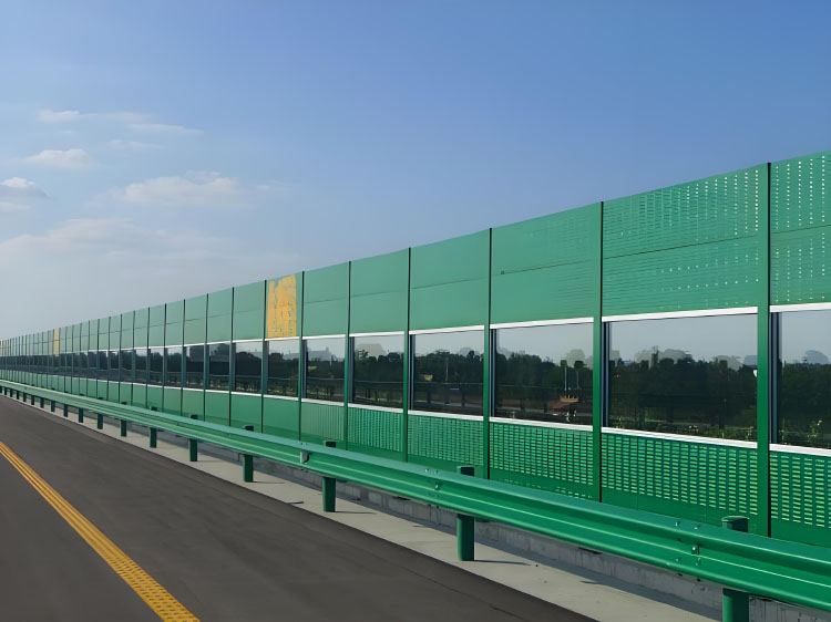 高速公路聲屏障(隔音墻)主要由鋼結(jié)構(gòu)立柱和吸隔聲屏板兩部分組成,立柱是聲屏障的主要受力構(gòu)件,它通過螺栓或焊接固定在道路防撞墻或軌道邊的預(yù)埋鋼板上;吸隔聲板是主要的隔聲吸聲構(gòu)件,它通過高強彈簧卡子將其固定在H型立柱槽內(nèi),形成公路聲屏障(隔音墻)。